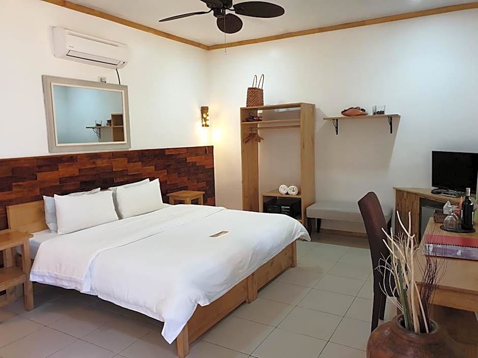 This cottage comes with 1 king-sized bed, or 2 single beds. Includes a ceiling fan, air conditioning, a private bathroom with hot-water shower and a sea/garden view facing balcony. Safety deposit box is in the room.